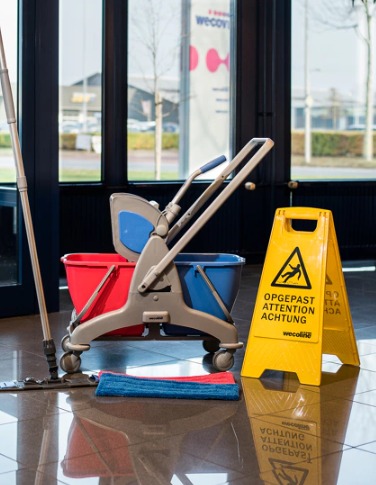 Het gebruik van een waarschuwingsbord is essentieel bij iedere vloerreinigingstaak.