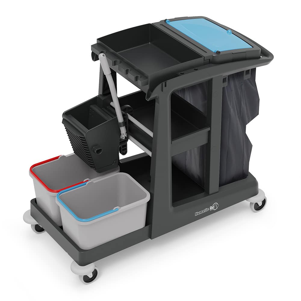Dankzij de gescheiden emmers is schoon en vuil water eenvoudig te scheiden, wat bijdraagt aan hygiënisch werken en een beter schoonmaakresultaat. De verticale pers zorgt voor gecontroleerd uitwringen van de mop zonder overmatige belasting van rug en schouders.