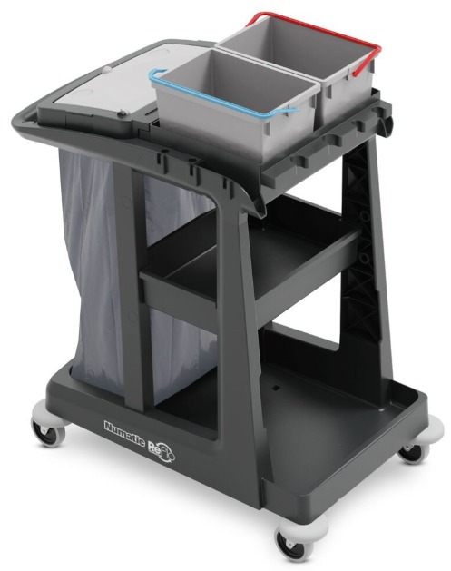 De Numatic ECO-Matic EM-1 is een compacte en duurzame schoonmaakwerkwagen met een afvalunit van 120 liter. Geleverd inclusief twee 10 liter emmers met blauw en rood handvat. Ideaal voor professioneel gebruik in kleinere tot middelgrote omgevingen.