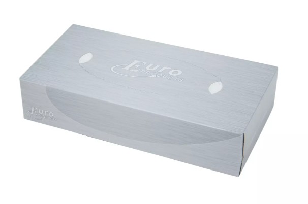 De tissues worden geleverd in een compacte en gebruiksvriendelijke doos die eenvoudig geplaatst kan worden op bureaus, balies of in sanitaire ruimtes.