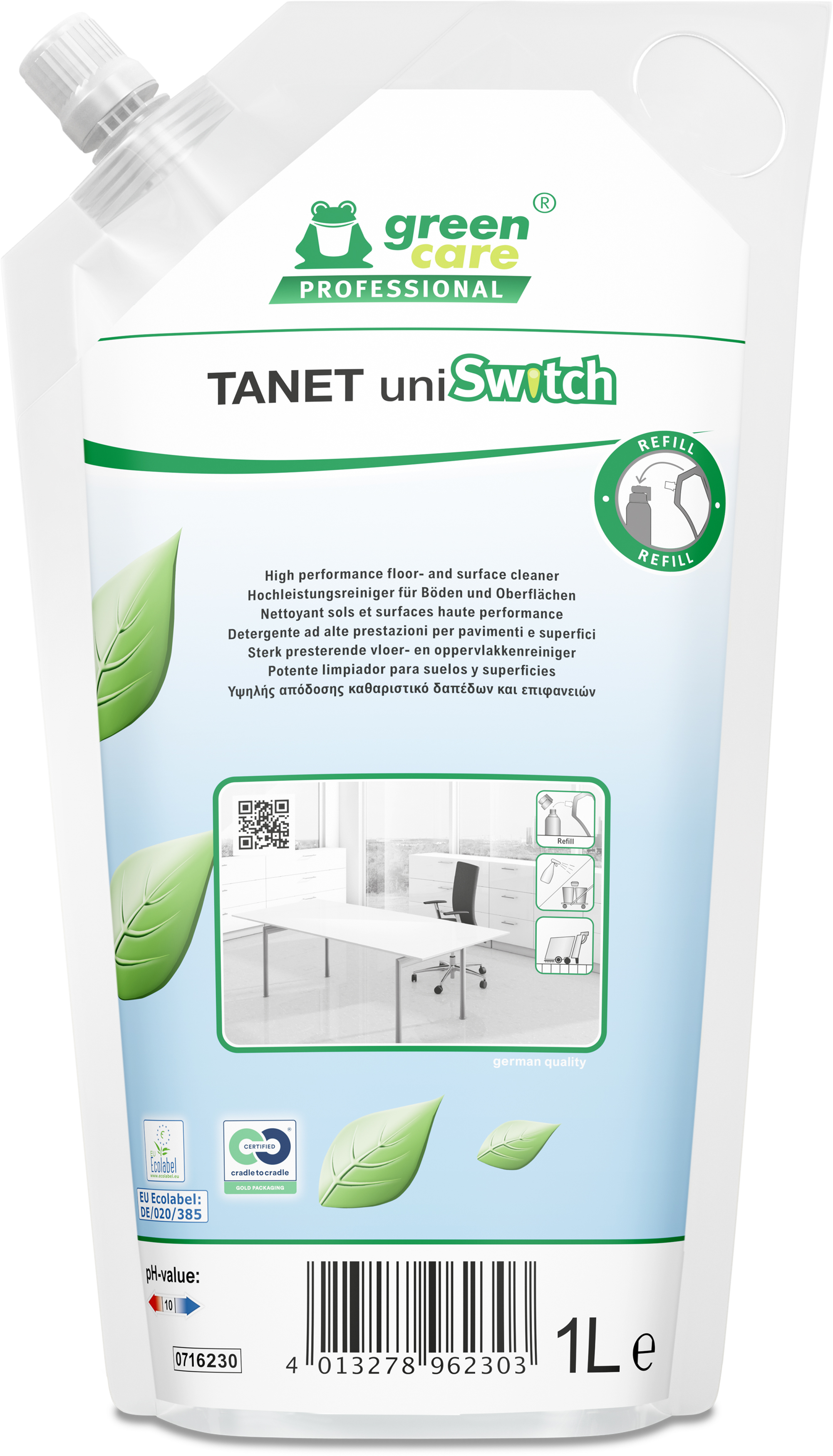 De goede bevochtigingseigenschappen zorgen voor een gemakkelijke en grondige verwijdering van vuil en vet van poreuze stenen vloeren en zelfs van hydrofobe oppervlakken zoals PUR, zonder strepen of vegen achter te laten. De ecologische sterk geconcentreerde formule maakt een kostenefficiënt gebruik mogelijk. Switch navulpouch.