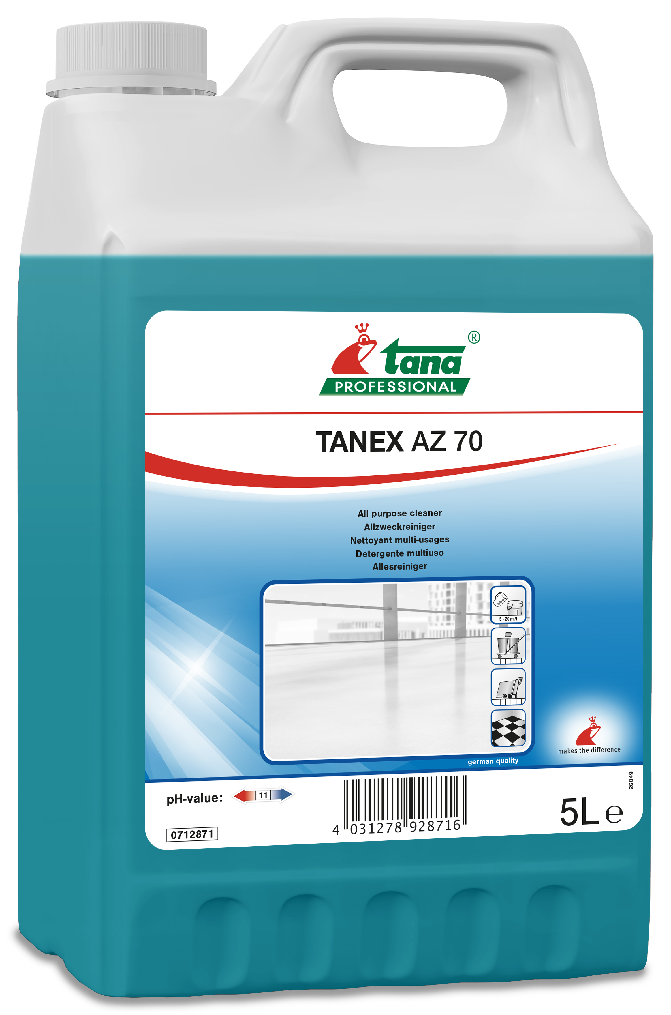 Krachtige allesreiniger, zeer doeltreffend, zelfs in kleine concentratie, voor het reinigen van grote oppervlakken in industrie en collectiviteiten. Eveneens geschikt voor het reinigen van deuren, glas- en kunststofoppervlakken, gelakte houten en metalen meubels en niet-beschermde vloeren. Bevat geen oplosmiddel. Aangenaam parfum.