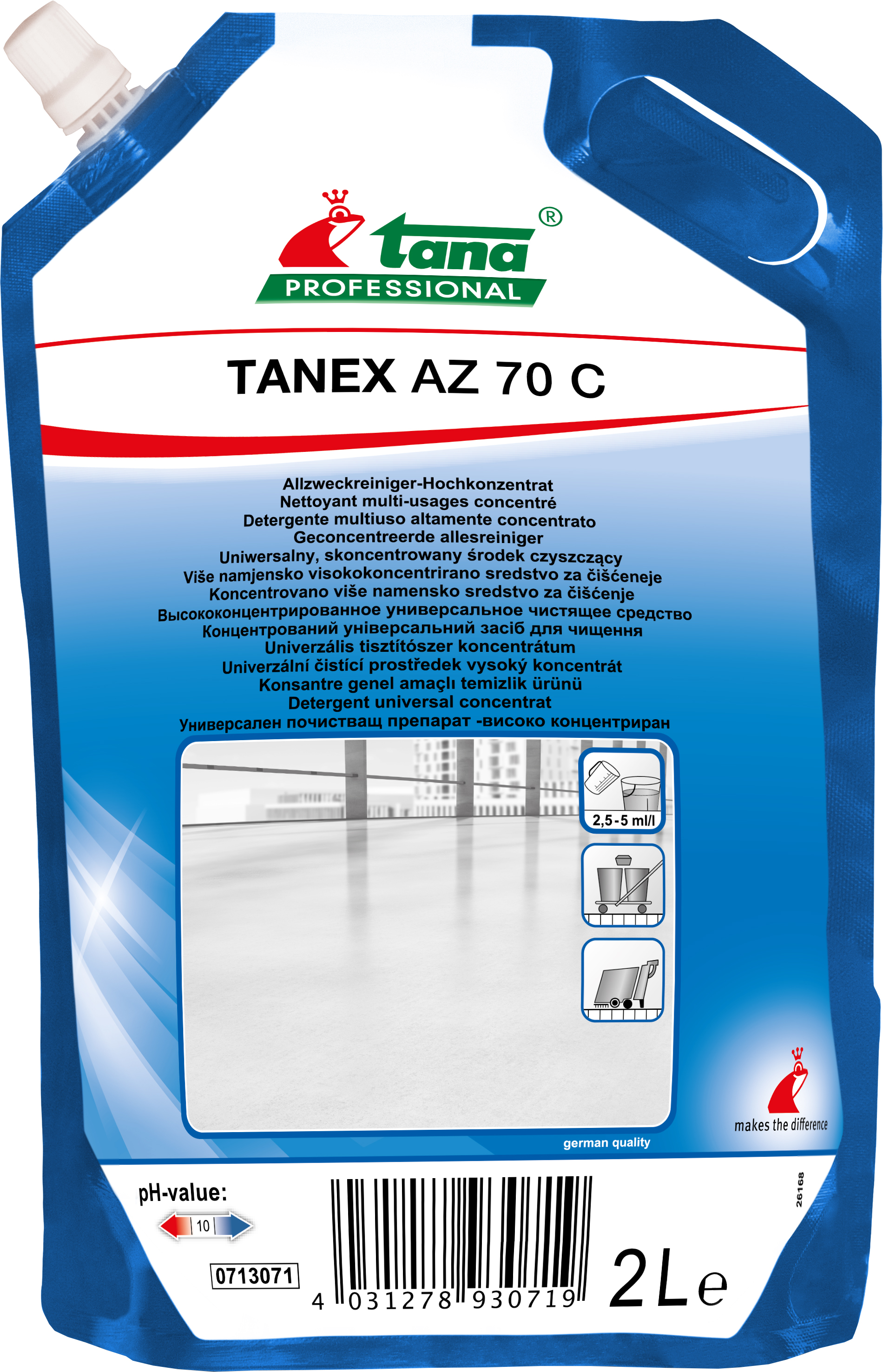 Krachtige allesreiniger, zeer doeltreffend, zelfs in kleine concentraties, 5-voudig concentraat in doseerfles en navulling. Is geschikt voor het reinigen van grote oppervlakken in industrie en collectiviteiten. Eveneens geschikt voor het reinigen van deuren, glas- en kunststofoppervlakken, gelakte houten en metalen meubels en niet-beschermde vloeren. Bevat geen oplosmiddel. Aangenaam parfum.