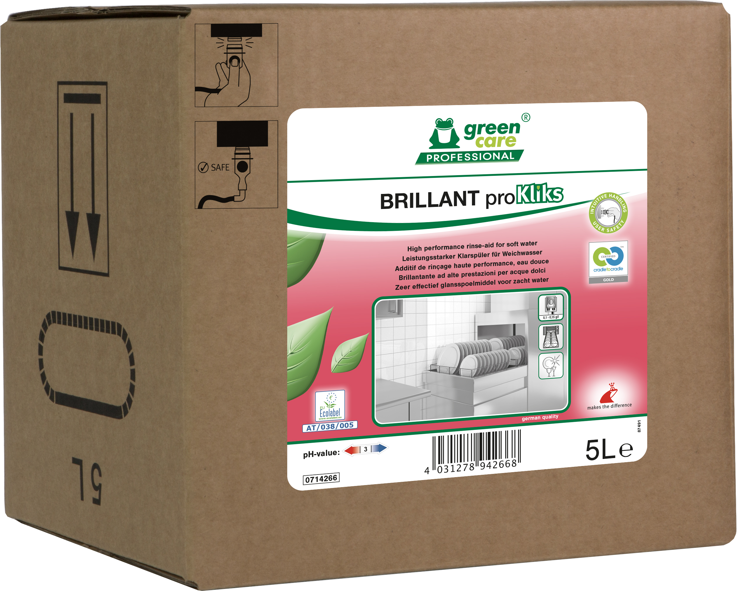 Ecologisch duurzaam glansspoelmiddel op basis van hernieuwbaar plantaardige oppervlakteactive stoffen en bio-alcohol, versnelt de droogtijd en laat borden en bestek glanzen. Onovertroffen vermogen tot schuimcontrole , zelfs bij heel zacht water. Zuinig in gebruik.